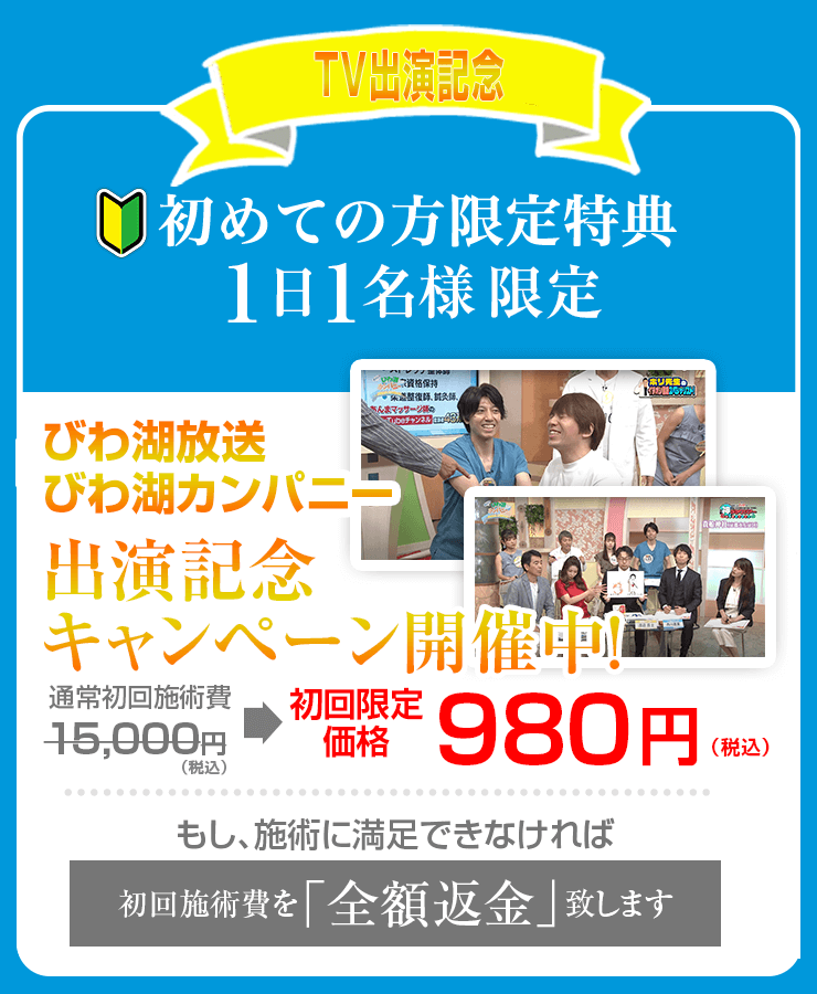 1mmも改善しなければ、その場で初回施術費を全額返金させていただきます。