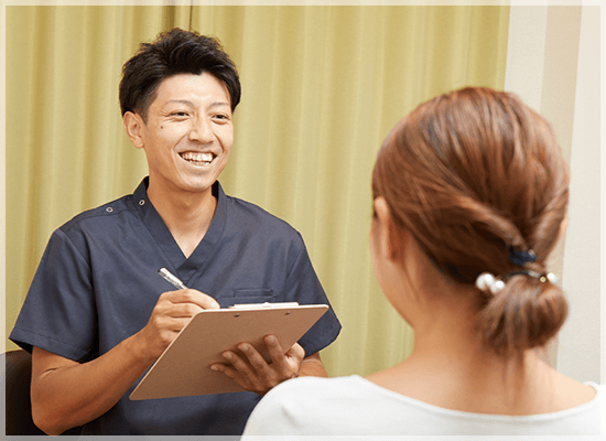 また、今後どのような施術を行っていくのか、どのくらいのペースで通院すべきなのかをお伝えさせていただきます。