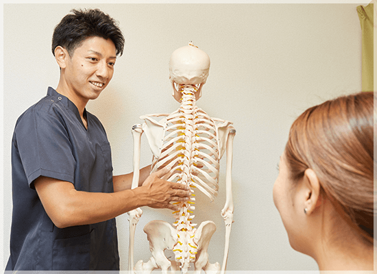 背骨や骨盤など、体がどのようなバランスになっているのか、それがどうして痛みを引き起こすのかなどをお伝えします。